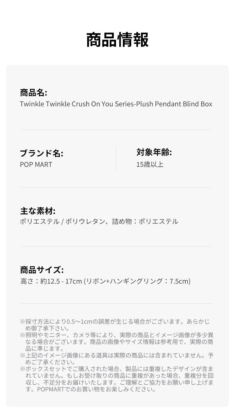 POP MART Twinkle Twinkle Crush On You シリーズ ぬいぐるみ ペンダント ポップマート