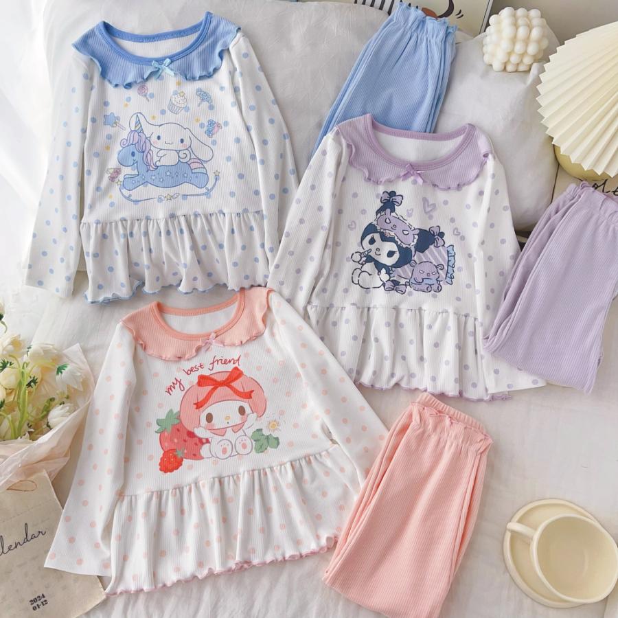 パジャマ 女の子 クロミ シナモン マイメロ 子供服 上下セット キッズ 春秋冬 プリンセス 部屋着 寝間着 かわいい 通気性 ガールズ 100 110 120 130 140