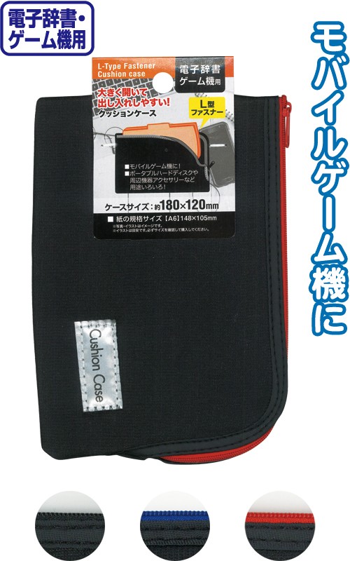 【まとめ買い=注文単位12個】L型ファスナークッションケース(電子辞書/ゲーム)18×12cm アソート(色おまかせ) 24-117(se2a766)